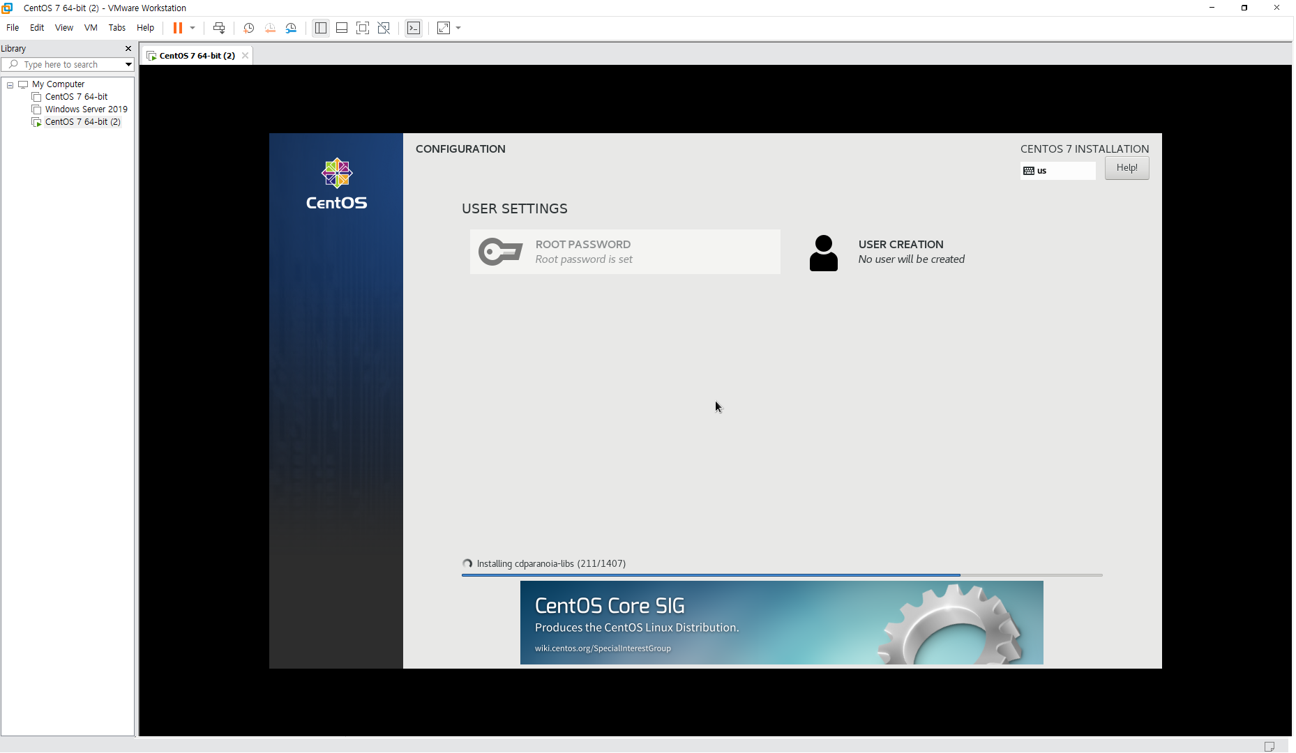 무난하게 CentOS라고 입력... 기존에 만들어 놓은 가상 머신이 있어 CentOS(2)가 됨