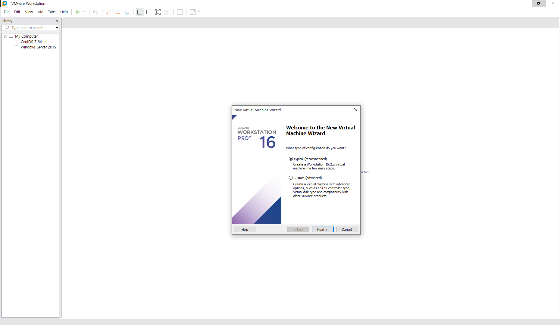 VMware Pro를 실행하고 New Virtual Machine를 선택